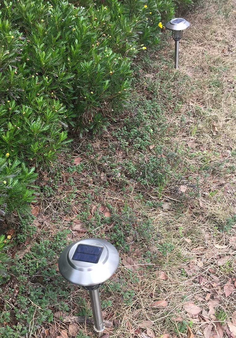 上圖:小區太陽(yáng)能滅蚊燈配地插,在綠化帶處可以直接插在土里使用。