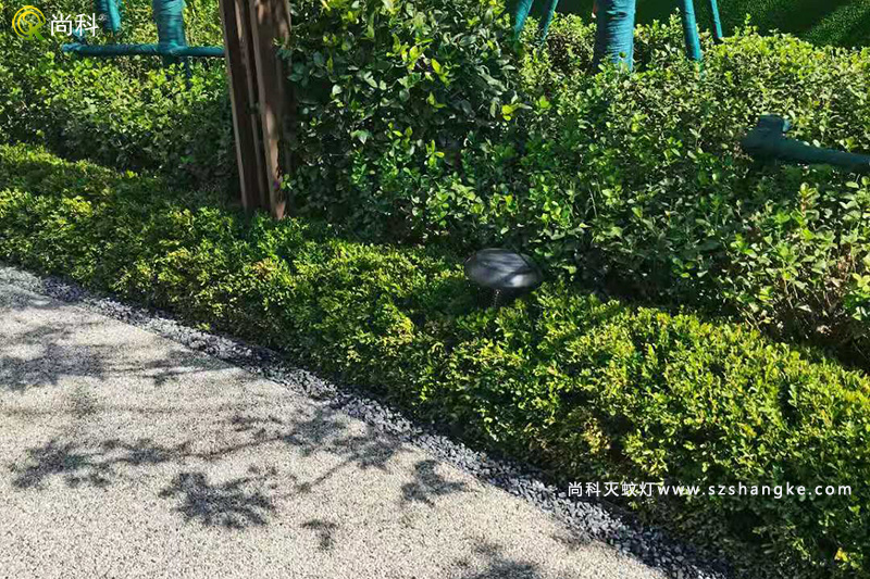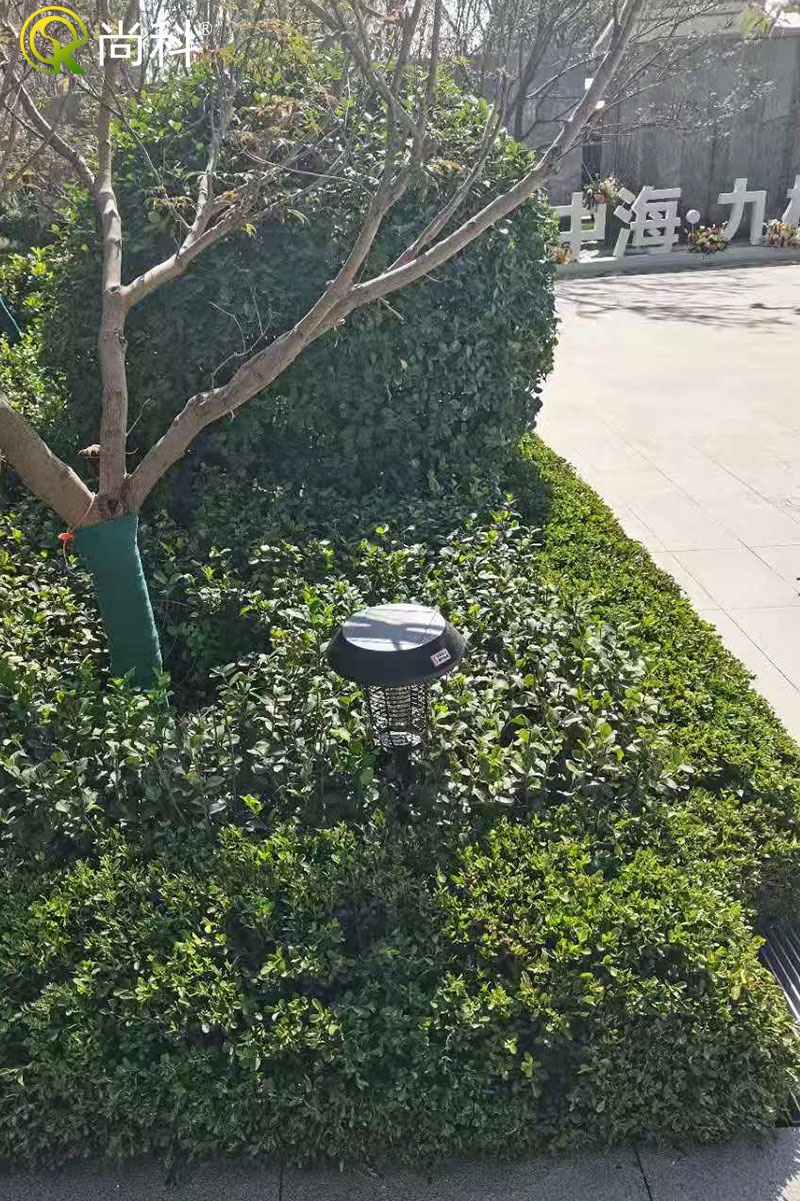 尚科太陽(yáng)能滅蚊燈安裝在綠化帶沒(méi)問(wèn)題,不過(guò)這里有樹(shù)木遮擋了頂部太陽(yáng)能板,會(huì )影響滅蚊燈充電。