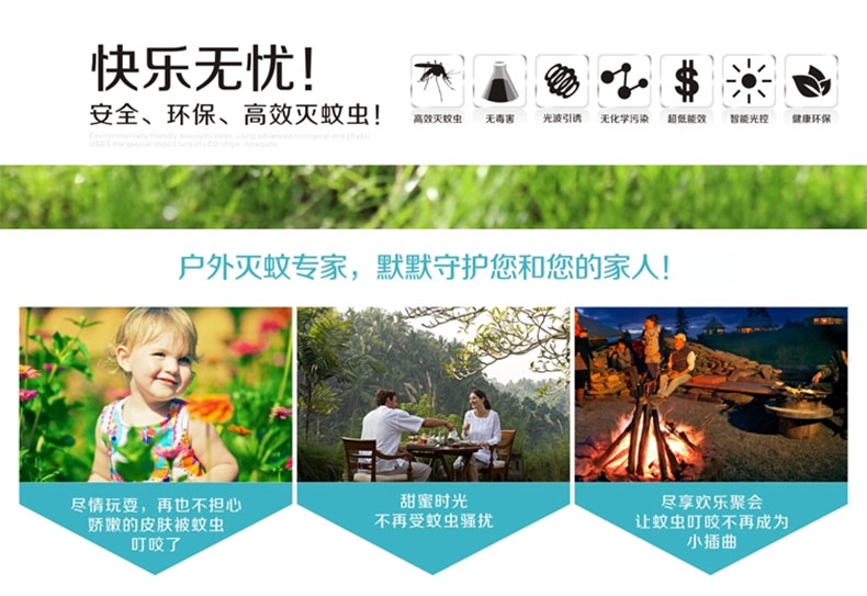 3、戶(hù)外滅蚊器安全性高,防水放曬防漏電,亞克力防護罩,放心使用。