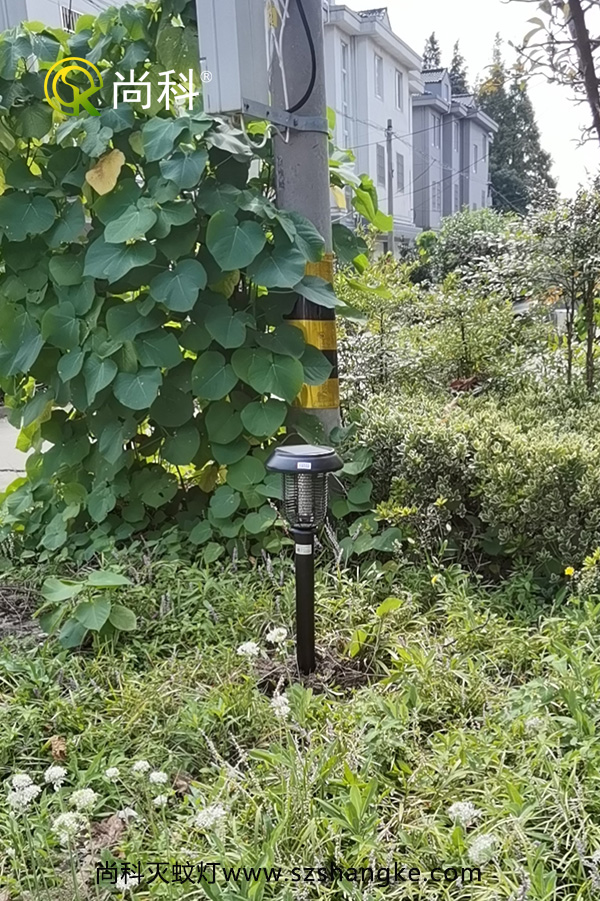 無(wú)蚊村綠化帶中安裝太陽(yáng)能滅蚊燈